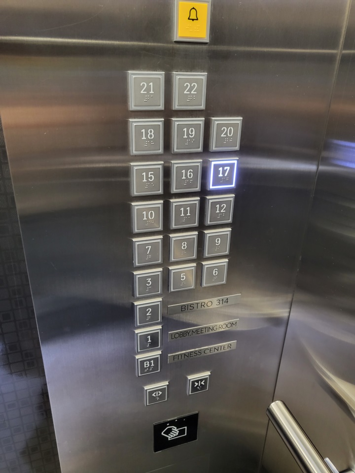 승객용 엘리베이터는 2대라서 체크인, 체크아웃 시간대에는 오르내릴 때 시간이 꽤 걸린다. 엘리베이터 번호버튼 하단 카드 모양에 객실 카드키를 터치하면 해당 층수가 자동으로 눌린다.