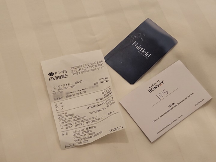 부산역 근처에서 옛날 경양식 돈까스 한 접시씩 클리어하고 숙소로 이동했다. 지하철 이용하려고 했는데, 비도 오고 그래서 택시를 탔더니만... 택시기사님이 완전 베스트 드라이버! 부산역에서 해운대 페어필드까지 택시요금은 14,000원 정도 나왔다. 하루치 주차요금 낸 셈이라고 치고... (페어필드 바이 메리어트 부산 해운대 호텔은 주차요금이 유료이다. 출차 시 주차타워에서 10분가량 소요되는 점도 약간 불편하다 생각할 수 있다.)