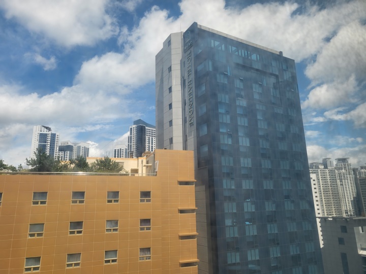 해운대 여행을 갈 때 페어필드에 묵는 이유는 물좋은 온천이 인근에 굉장히 많기 때문이다. 이번엔 베니키아 호텔 가족탕을 꼭 이용해볼 생각이었는데 워낙 성수기라 그런지 가족탕 이용이 어려웠다. 가족탕 대여 없이 모두 숙박으로 돌린 것 같았다. 다. 페어필드에서 창문으로 바라보면 베니키아 호텔이 잘 보이는데 여느 때와는 달리 객실에 불빛이 빼곡하게 켜져 있었다. 아마도 풀북이었던 듯.