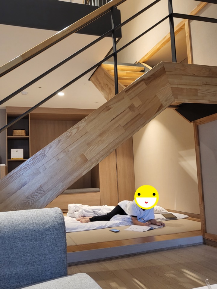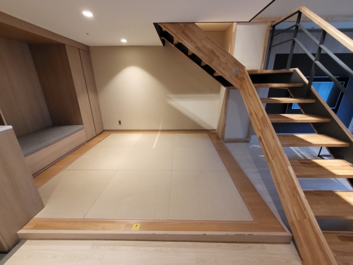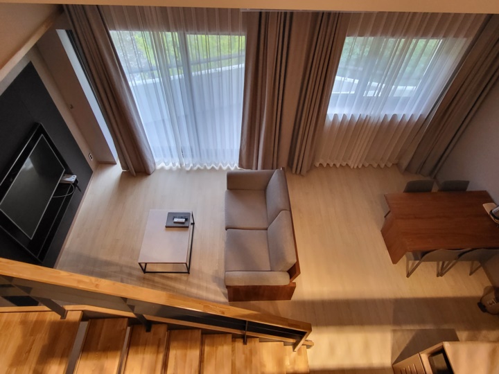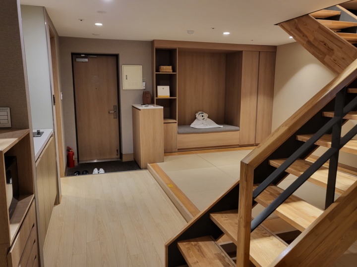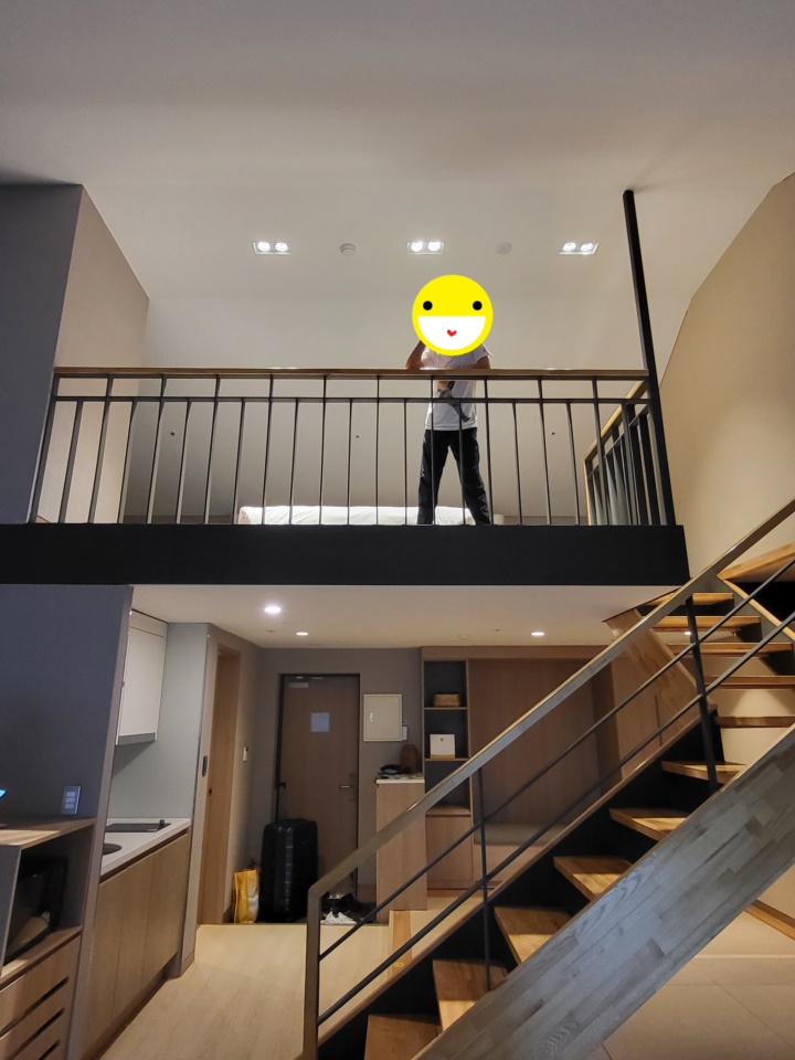 복층인 숙소에 가면 아이가 매우 좋아하길래 콘도동 복층 스위트를 선택했는데, 역시나 아이가 굉장히 좋아했다. 복층에는 더블베드가 놓여있고, 1층에서 침구를 깔고 잘 수 있게끔 되어 있는 구조이다.