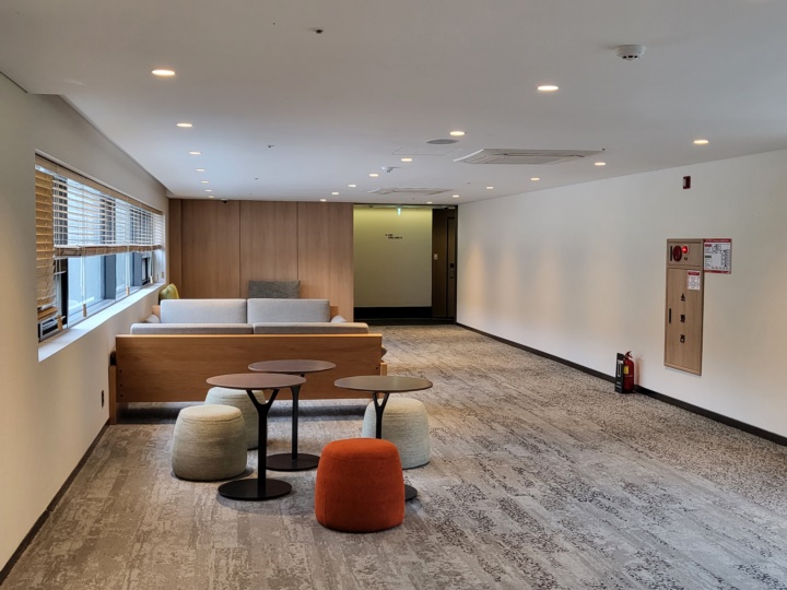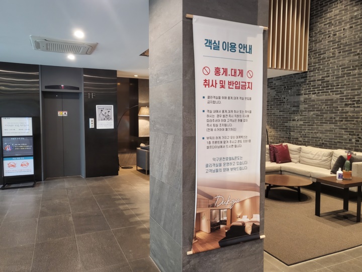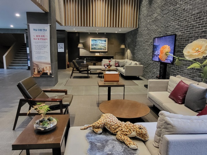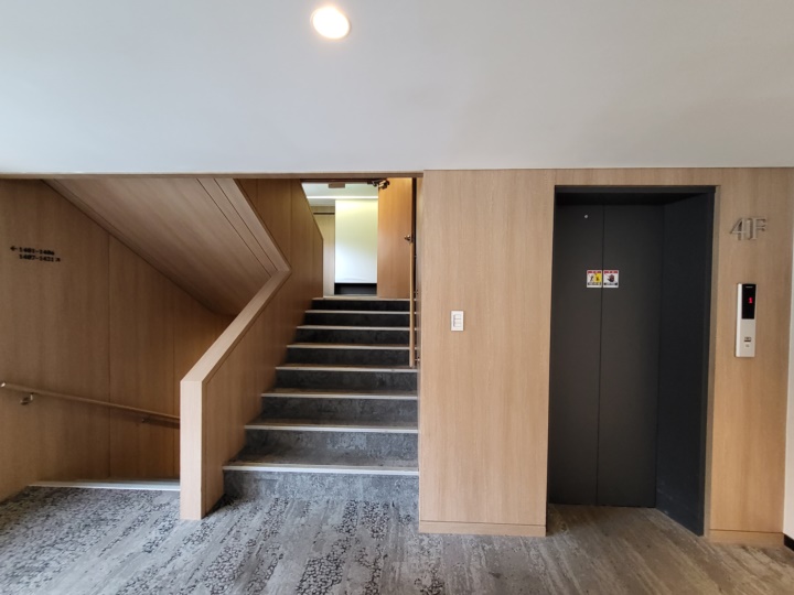객실 카드키는 콘도동도 호텔동도 각 1장씩만 제공된다. 엘리베이터를 타고 배정받은 4층 객실로 올라가면 이렇게 대기공간도 깔끔하게 조성해두었다.
