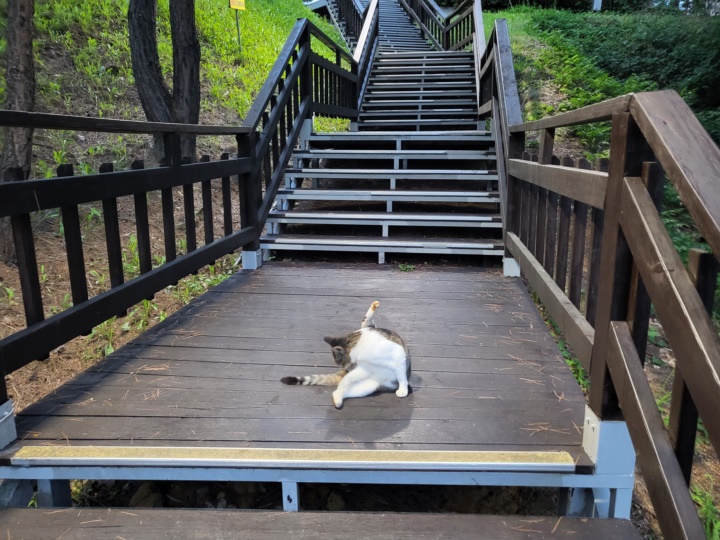 개운하게 온천욕을 마치고 돌아오는 길에 귀여운 고등어 한 마리도 만났다. 털에 윤기가 나는 것이 영양상태가 매우 좋아 보였는데 그 이유는....
