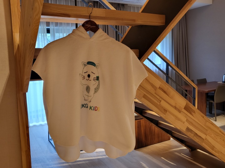 아이가 특히 이 판초타월을 마음에 들어 했다. (호텔동에는 이 아동용 판초타월이 없음) 덕구상회에서 구입하려고 했는데 이것 말고 어른용 목욕가운만 판매한다고 해서 아쉬웠다. 덕구 아동용 판초타월 판매해주세요 plz...