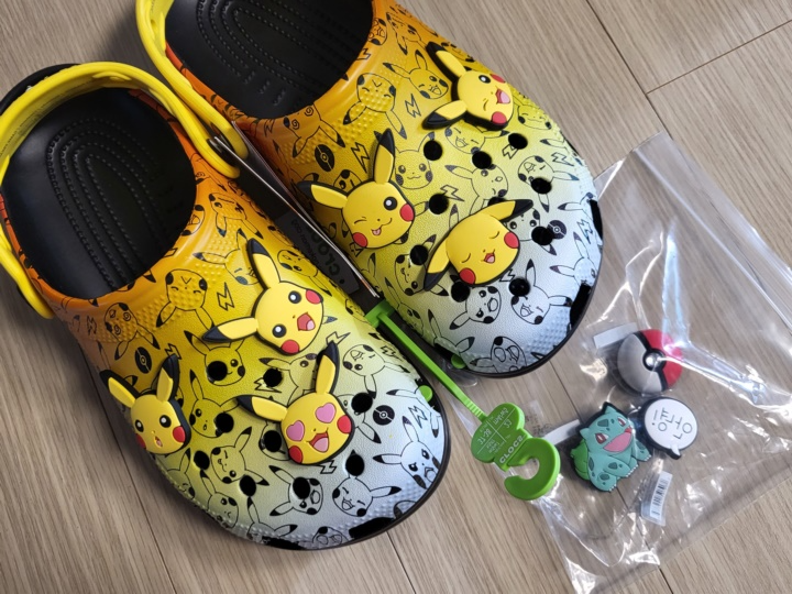 지난달 영등포 타임스퀘어에 갔을 때, 크록스 매장 앞을 지나가게 되었다. 요즘 포켓몬스터 인기가 정말 대단해서 포켓몬 빵은 물론이고 아이스크림, 돈까스, 피자까지 그 인기가 대단하다. 하지만 크록스에서 포켓몬 클로그가 나온 줄은 몰랐는데.. 실물을 아이가 사달라고 성화라서 포켓몬 지비츠와 함께 구입했다.