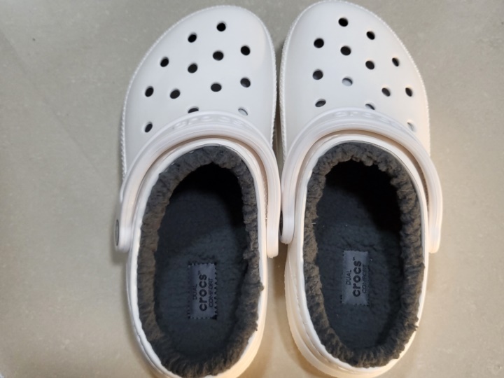 예전에는 크록스가 넘 못생겨 보여서 저런 거 왜 신나 싶었는데 한번 신어보니까 편하고, 털 안감까지 되어 있으니 겨울에도 애용하게 될 예정.... 안감은 어두운 색깔이라 더욱 안심!