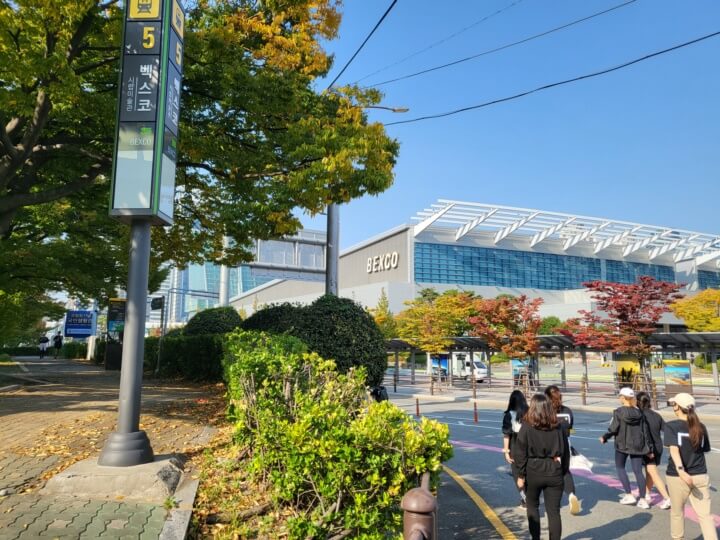 부산 지하철 2호선 해운대역에서 지하철을 타고 센텀시티역에서 하차 집결장소인 벡스코 야외광장으로 향했다. 집결시간이 오전 8시라 7시 40분쯤 벡스코에 도착했다. 부산도 일교차가 커서 한낮엔 반팔만 입고 다녀도 될 정도지만 아침엔 상당히 추웠다.