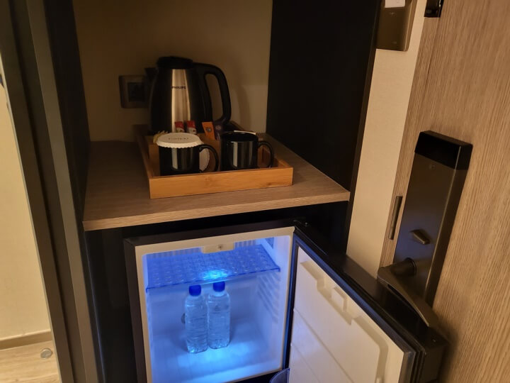 샤워가운, 다리미&다리미판, 전기포트, 머그컵과 차류 등이 준비되어 있고 개인금고와 미니냉장고 (생수 2병 무료)가 있다.
