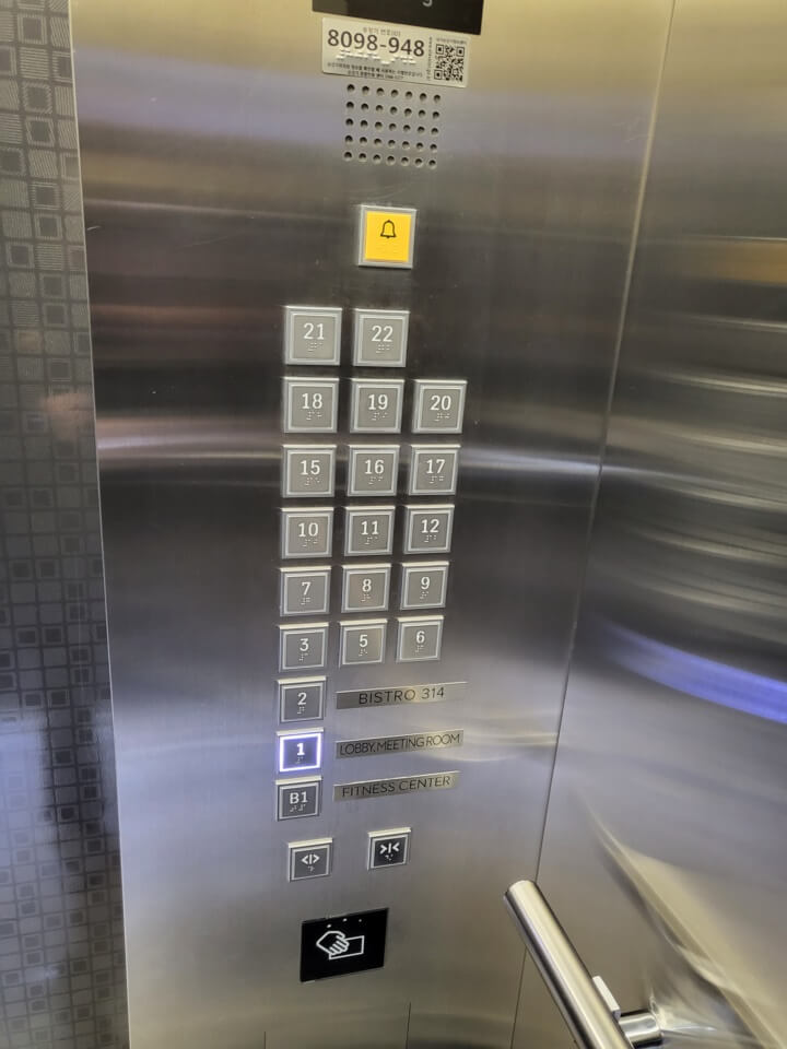 객실은 스탠다드 킹(게스트룸, 1킹베드, 도심전망) - 스탠다드 트윈(게스트룸, 2 트윈베드, 도심전망) - 프리미어 킹 고층(게스트룸, 1킹베드, 도심전망) -프리미어 트윈 고층(게스트룸, 2트윈베드, 도심전망) - 디럭스킹 (게스트룸, 1킹베드, 부분 바다 전망) - 디럭스 트윈(게스트룸, 2트윈베드, 부분 바다 전망) - 코너 패밀리룸(대형 게스트룸, 1킹베드, 도심전망)-디럭스 패밀리 객실 (대형 게스트룸, 1킹베드, 부분 바다 전망)이며 엘리베이터는 2대라 체크인, 체크아웃 시간대에는 꽤 기다려야 한다.
