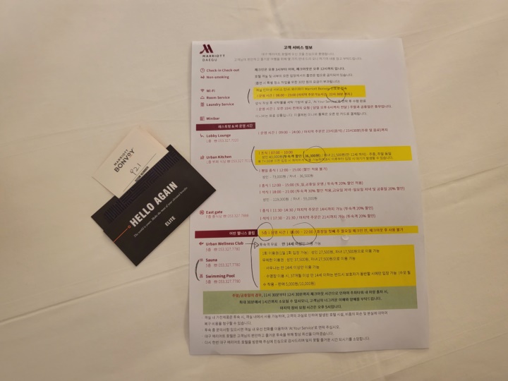 언제 다시 대구 여행을 또 하게 될지 모르겠지만, 그때는 이그제큐티브 라운지 액세스 가능한 객실을 예약해서 이용해 보고 싶다. 대구 메리어트 호텔 어반 키친 조식, 디럭스 더블 객실 2박 3일 숙박 후기 끝:D