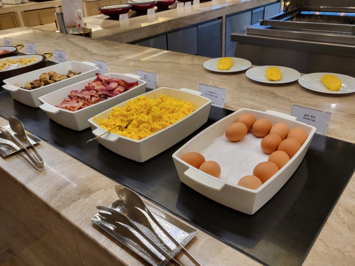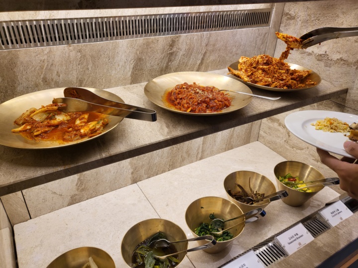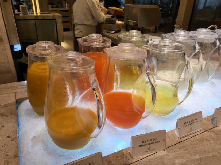 체크인할 때 받은 안내문에도 7시 30분 이전 입장 시 쾌적하게 이용가능하지만, 8시이후부터 입장시 대기가 발생할 수 있다고 안내되어 있었다. 우리 가족은 7시 50분경 입장했는데 그땐 자리에 여유가 있어서 바로 착석할 수 있었다. 하지만 나올 때 보니 어반 키친 앞으로 줄이 길게 늘어서 있었다. 주말에 조식당을 이용할 예정이라면 최소 8시까지는 와야 기다리지 않고 먹을 수 있을 듯하다.