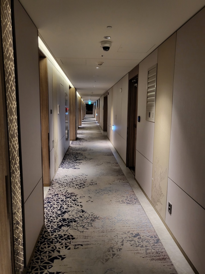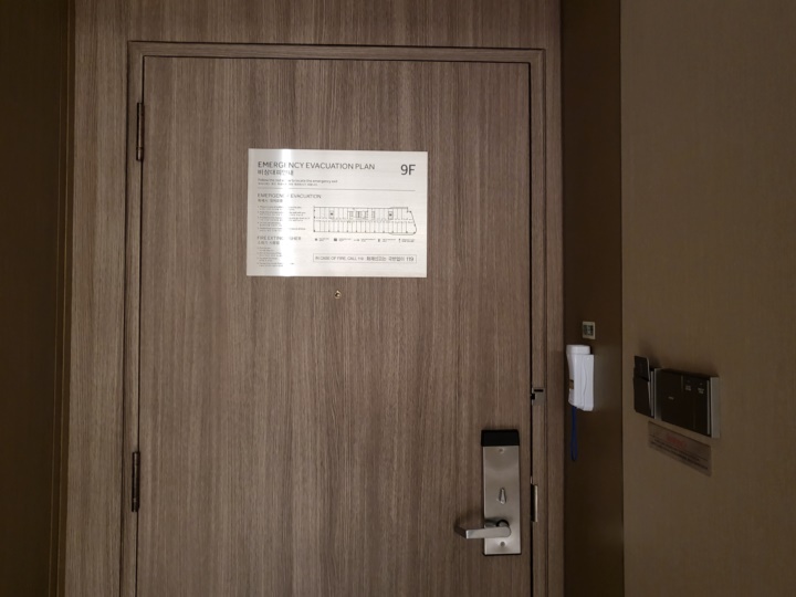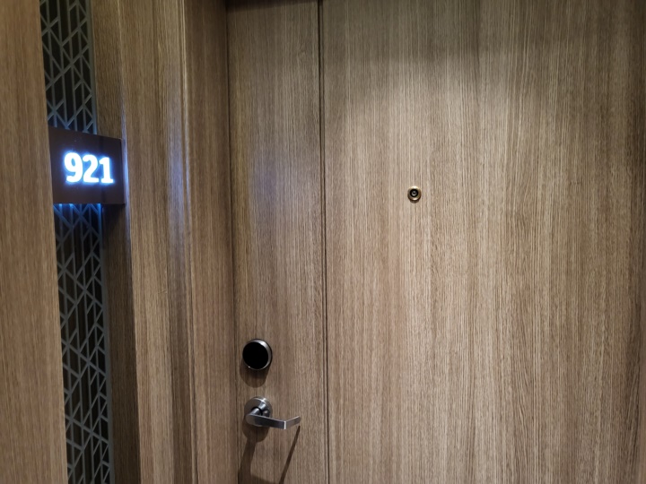 엘리베이터는 카드키 터치하면 자동으로 층수가 눌린다. 우리가 배정받은 객실은 921호, 후기를 찾아보니 벽간 소음이 있다고 하는데 옆 객실이 비었는지 딱히 벽간 소음을 느끼지는 못했다. 다만 복도식으로 되어 있어서 사람들이 복도 오고 갈 때 대화 나누는 소리는 고스란히 들린다.