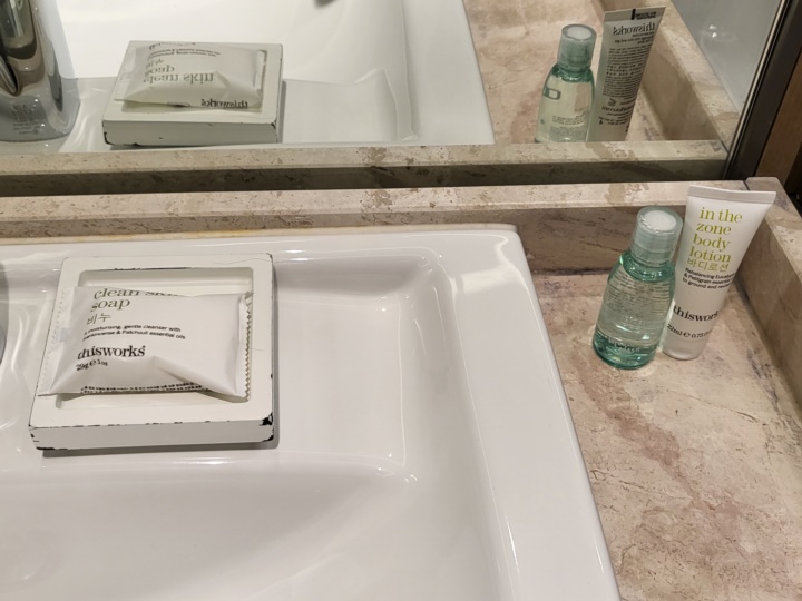 창문가로 긴 소파가 설치되어 있고, 테이블도 놓여 있어서 문서 작업할 때 편했다. 다만 냉난방이 자율조정이 아닌지, 이 객실만의 문제였던지 컨트롤러가 말을 듣지 않았다. (너무 더워서 이틀 모두 창문을 열어놓고 잤다 ㅎㅎㅎ)