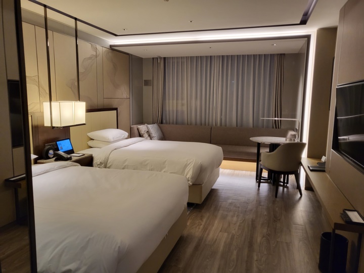 동대구역 5성급 대구 메리어트 호텔의 객실은 1킹베드 게스트룸, 2더블베드 게스트룸, 1킹베드 대형게스트룸, M클럽 라운지/수영장 이용 1킹베드, M클럽 라운지 / 수영장 이용 2더블베, 이그제큐티브 스위트, 프레지덴셜 스위트 등으로 준비되어 있다. 우리 가족이 2박 3일을 보낸 객실은 이 중 더블베드 2개와 욕조가 있는 디럭스 더블 객실이다.