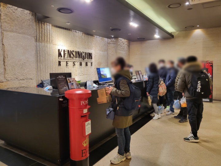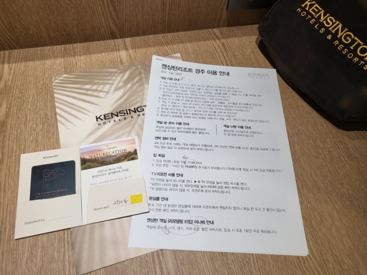 보문호수, 첨성대, 동궁과 월지, 경주 월드, 감포 해수욕장 등 주변 관광지를 둘러보기에 좋은 데다 숙박비가 부담스럽지 않아서 인기가 많은 경주 켄싱턴리조트. 곧바로 숙소로 온 게 아니고 청산한우에 들러서 저녁을 먹고 왔더니 켄싱턴리조트 본관에 도착했을 때는 꽤 늦은 시간이었다. 그런데도 금요일이라 그런지 체크인을 하려는 투숙객이 많았다.