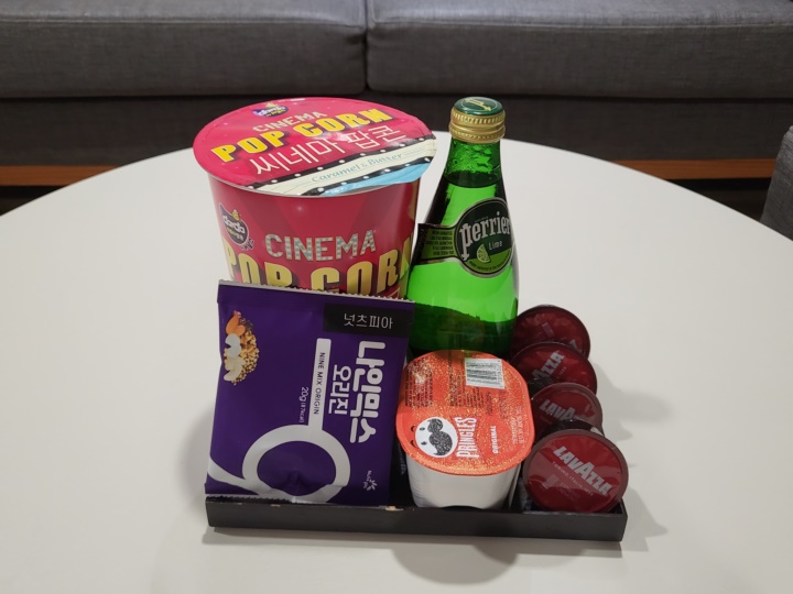 냉장고 안에는 2리터 생수가 들어있고 (무료임) 거실 테이블 위에는 웰컴 푸드가 제공된다. 2022년 12월 방문 시 팝콘, 넛츠, 페리에 생수, 감자칩, 라바짜 커피 캡슐 4개가 제공되었다. 켄싱턴 객실에 준비된 미니바는 웰컴 서비스로 입실 시 최초 1회만 무료 제공된다고 한다.