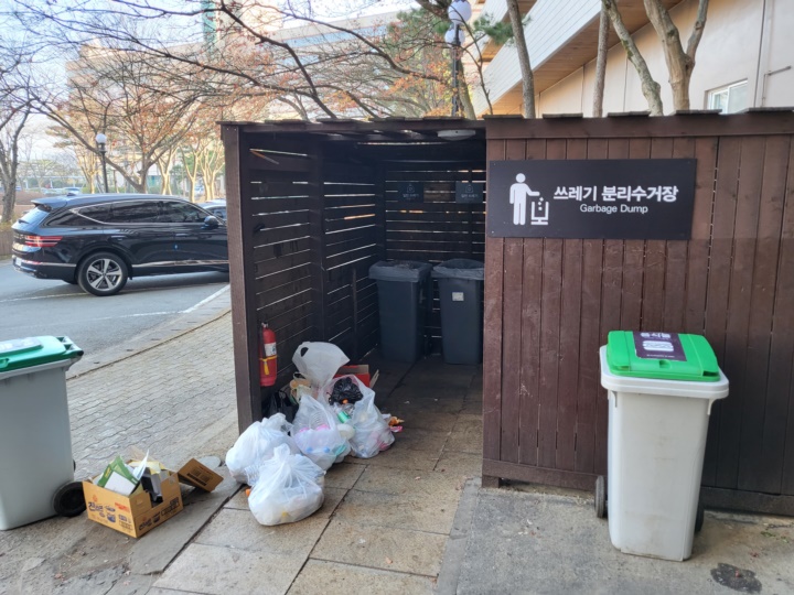 퇴실하기 전에 재활용, 일반쓰레기를 분리배출하여야 한다. 쓰레기 분리수거장에 버리면 되는데, 직원뿐께서 그냥 엘리베이터 앞에 모아두면 된다고 알려주셔서 거기에 두고 나왔다.