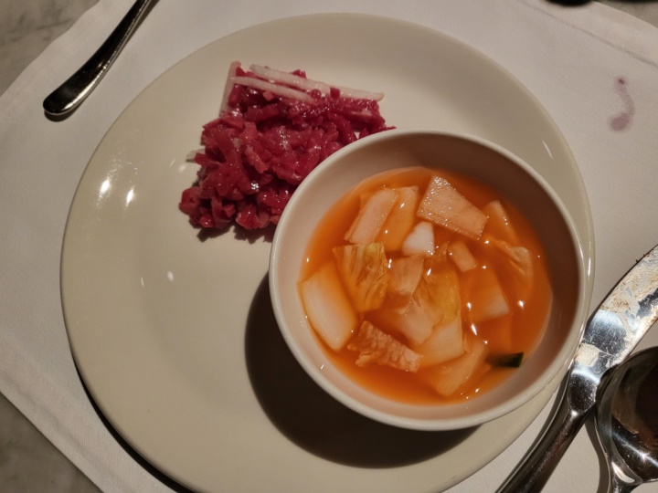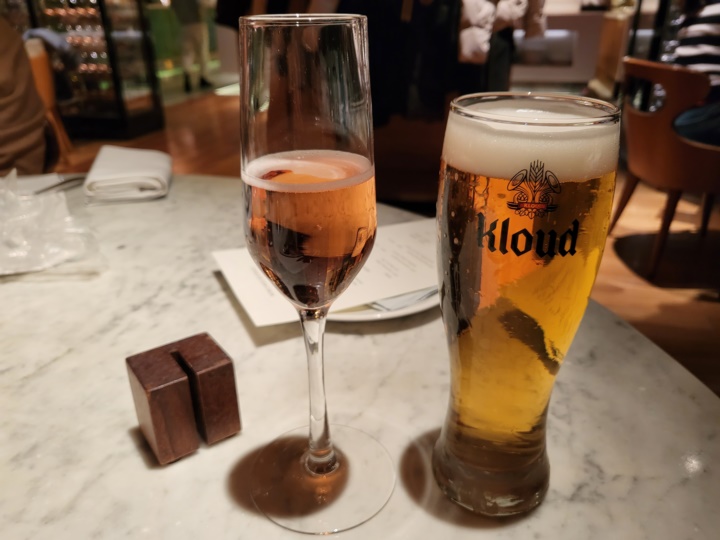 다른 주류는 즐기지 않는 편이고 맥주파라서 클라우드 드래프트로 주문했다. 맥주는 클라우드와 아사이 440ml로 각 10,000원 / 15,000원이다. 한 잔만 마시려고 했는데 생맥주 컨디션이 아주 좋아서 혼자서 두 잔 마심;;; 대신 웰컴 드링크로 따라 주는 로제 와인은 모두 남편이 처리해줌. 분위기 내기에는 좋았지만, 맛이 없었다;;;; 아마도 무알콜이라 맛이 없게 느껴진 거 같다 ㅋ