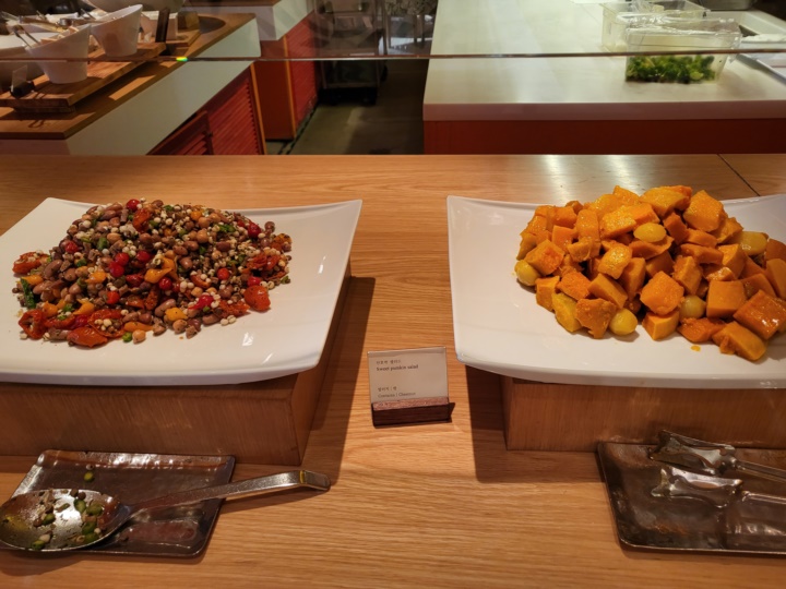 콩샐러드와 단호박 샐러드, 버섯 샐러드와 게살 샐러드, 관자살 샐러드