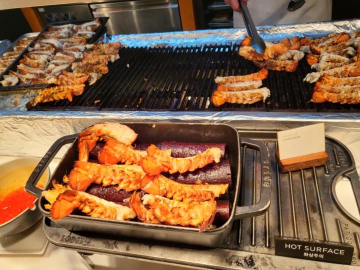 바닷가재 구이 다음 고객님을 위해 랍스터는 3개씩만 가져가시고 다음에 가져가라는 안내문이 붙어 있다. 역시 인기 있는 메뉴라는 의미! 개인적으로는 대게나 랍스터는 그렇게 맛있게 느껴지지는 않았다.