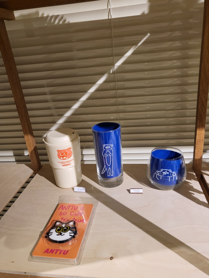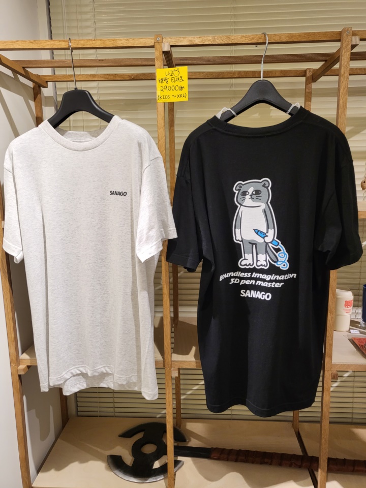 3d펜으로 만든 직품들 말고도 캐릭터 글라스나 티셔츠 같은 사나고 카페 굿즈도 판매하고 있다. 아이는 내심 나고 티셔츠는 사고 싶었던 모양이다. 사준다고 할 때는 안 사더니만...ㅎㅎㅎ