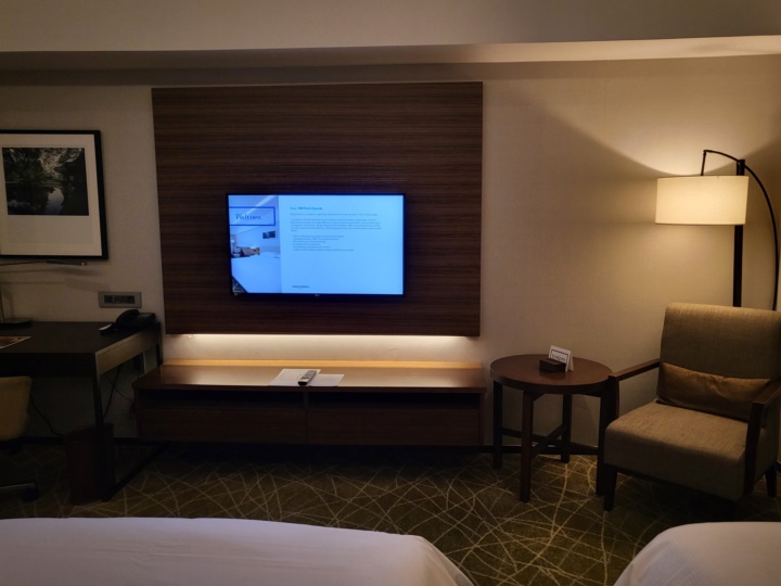 침대 발 아래쪽으로 벽면 TV 부착되어 있고 1인용 소파와 테이블, 업무용 공간도 넉넉한 편이다. 가족단위 여행객의 숙소로도 좋지만, 비즈니스 목적의 투숙객에게도 적합할 것 같다.
