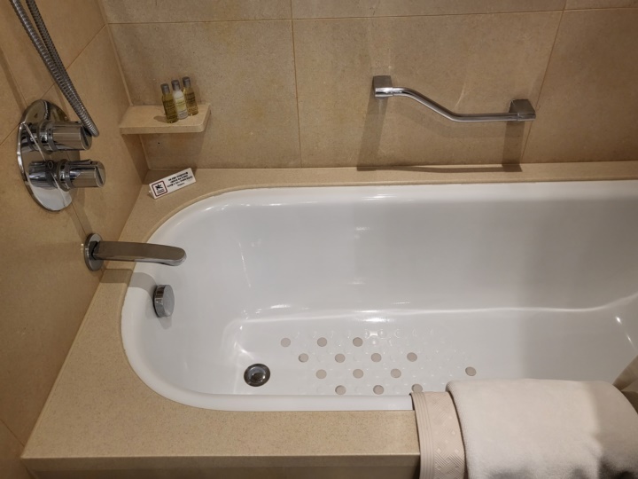 디럭스 트리플 패밀리룸 욕실 욕조와 비데가 설치되어 있고, 어메니티는 크랩트리 앤 에블린 버베나 앤 라벤더 제품으로 비누, 샴푸, 컨디셔너, 샤워젤, 바디로션의 5종이 준비되어 있다. 머리빗과 면도기도 있지만 덴탈키트는 챙겨 와야 한다.