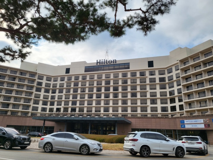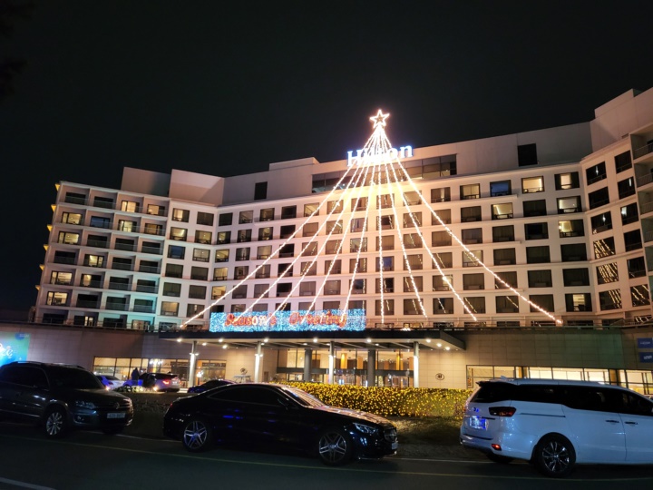 벚꽃시즌에 오면 더 좋은 힐튼 경주, 봄은 아니고 겨울이었지만 역시 만족도가 높았다. 르구어메 첨성대 케이크 사고 싶었는데 우리가 투숙한 다음 주부터 예약픽업이 가능하다고 해서 아쉬웠다. 층고가 높은 힐튼 경주 로비에는 크리스마스 트리가 있는데, 요즘 워낙 대형 트리가 유행이다 보니 좀 작게 느껴지는 것 같다. 층고가 6.4m나 된다고 하니 내년에는 엄청 큰 트리를 기대해 본다.