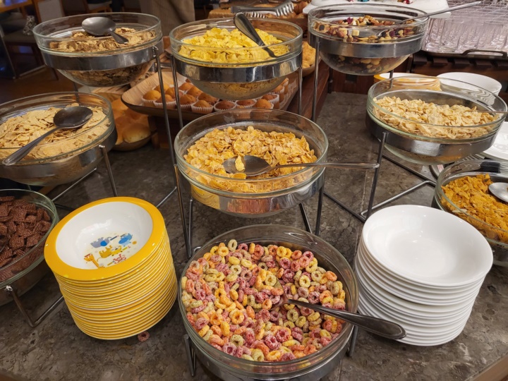호캉스 가면 8시 9시에 일어나는 게 다반사인데 이 날은 오전 6시 30분에 일어났다. 아이 무료 조식을 위해서였다. 조식당에 도착한 시간이 오전 6시 50분이었는데 이용객이 거의 없었다. 하지만 10분 후 레이크사이드 카페 앞에 조식 대기 줄이 길게 늘어섰다. ㅎㄷㄷ