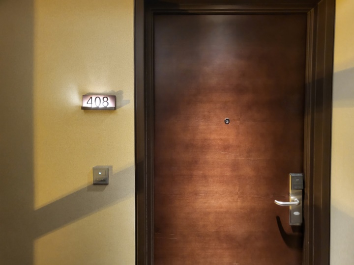 408호는 복도 제일 끝방이었는데, 카드키 터치하고 문을 열고 들어서면 오른쪽에 이미 키가 꽂혀 있다. 그래서 체크인할 때 제공받은 2장의 객실 카드키는 한 장씩 가지고 다닐 수 있었다.