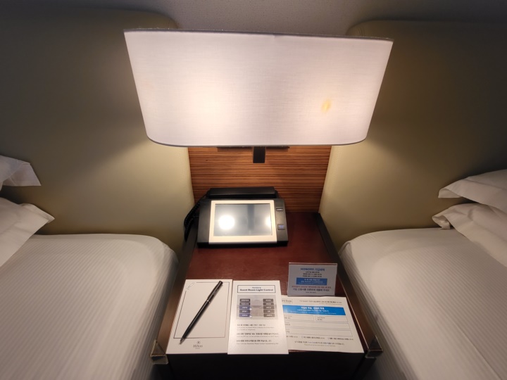모든 객실은 금연실 (위반 시 추가 객실 정비료 20만 원 별도 청구)이고, 객실 내 조명은 터치스크린이 있는 전화기의 화면을 터치하여 조절할 수 있다.