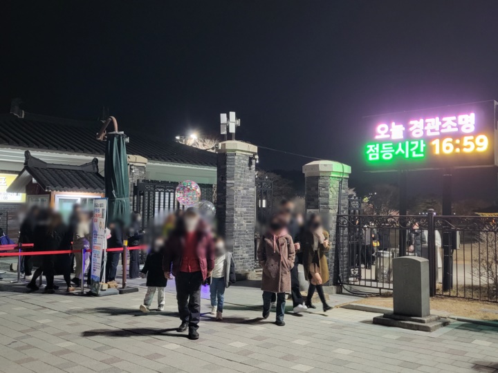일몰시간에 따라 조정해서 점등하기 때문이다. 12월 중순 방문시에는 16시 59분에 점등하였다. 밤 10시가 되면 자동 소등이 되고 조명이 없거나 인적이 드문 곳은 어둡기도 하니 마감시간 30분 전에는 퇴장할 준비를 하고 있는 게 좋을 것 같다.