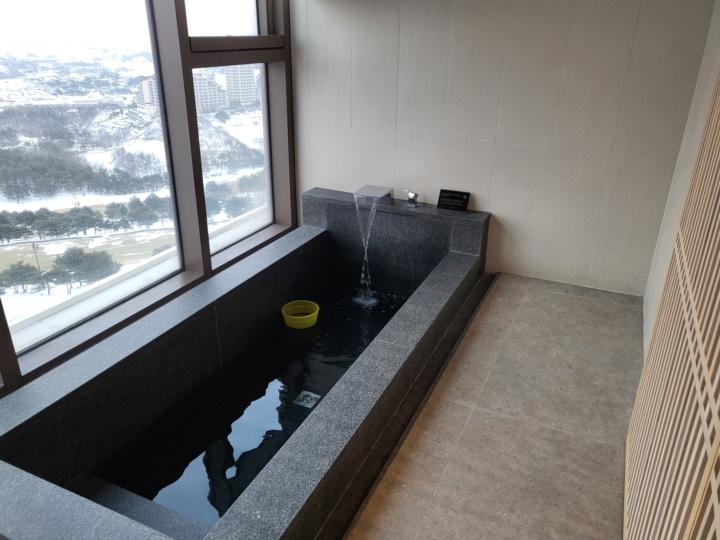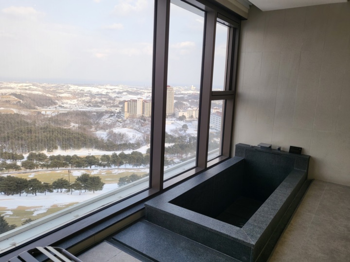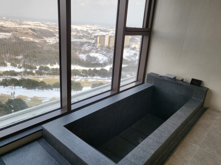 보글보글 자쿠지는 아니지만, 꽤 사이즈가 큰 가족탕을 이용할 수 있어서 좋다. 소노펠리체 델피노 전 객실에 천연 온천수가 공급되므로 프라이빗한 온천여행을 계획한다면 강력 추천! 아담해 보이지만 단차가 있어서 온천수를 받는데 시간이 꽤 걸리기 때문에 스파를 즐기기 한참 전에 물을 받기 시작해야 한다.