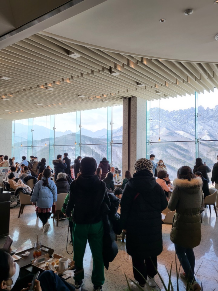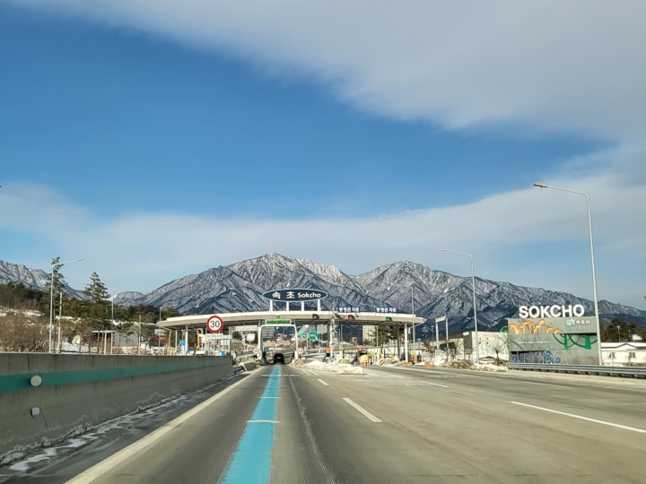 울산바위 전망 객실 배정을 위해 일찍 출발하고 싶었지만... 늦잠을 자고, 중간에 휴게소에 두 번이나 들렀더니 이미 날이 밝았다. 늦게 도착해서 아쉬웠지만, 여기서부터 이미 기분이 업!