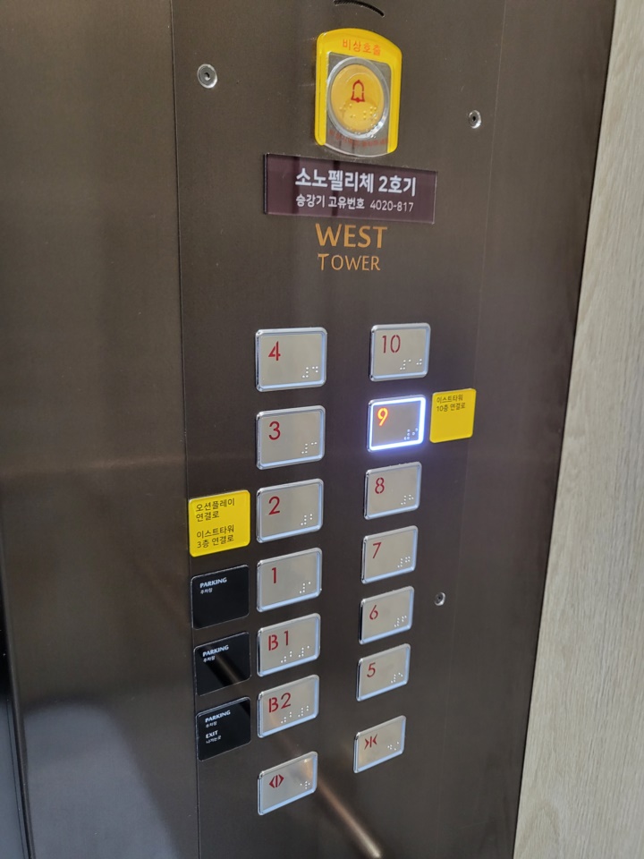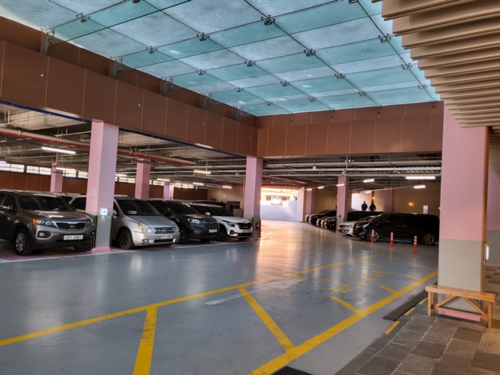 이스트타워 지하주차장 2박 3일 숙박하면서 자주 드나듦. 여기에 주차를 한 적은 거의 없다. 여기에서는 드랍만 하고 웨스트 주자창에 주차하곤 했다. 웨스트 타워와 이스트 타워 연결로가 있음 (노란색 표시층)