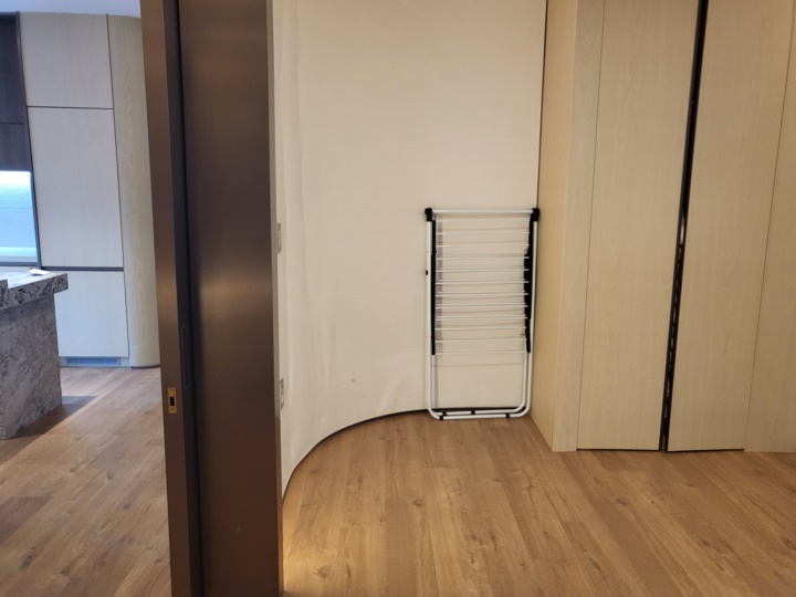 스파룸은 침실 1에서는 미닫이 문으로 연결, 주방 쪽으로는 여닫이문으로 드나들 수 있다. 창문과 출입문은 블라인드 내려서 사용가능하다.