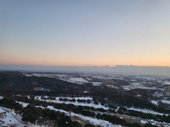 소노펠리체 델피노 로얄 스위트 전망, 오션뷰라 시야를 멀리 두면 바다이다. 동쪽이니 일출을 볼 수 있을 줄 알고 창문에 코 박고 있었는데 ㅎㅎㅎ 이쪽이 정동쪽이 아니었다. 스파룸 쪽 대각선쯤에서 태양이 떠오른다.