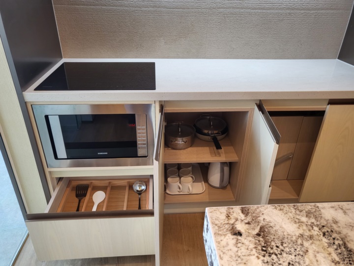 전기레인지와 전자레인지, 냄비와 식기, 전기포트, 밥솥 등 취사도 가능하여 이마트에서 밀키트 사 와서 두 끼는 해결하기도 했다.