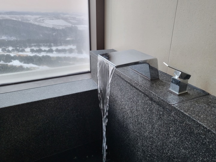 스파욕조가 폭이 좁아서 금세 물을 받을 수 있을 것 같아 보이지만 생각보다 깊게 제작되어서 온천수를 충분히 받는 데에는 시간이 꽤 걸린다.