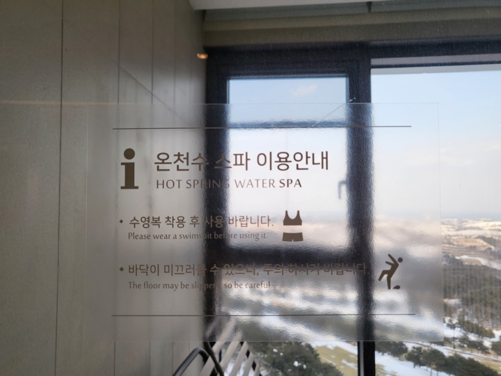 고성 소노펠리체 델피노 전 객실에는 온천수가 공급된다. 온천수 스파룸 이용 시에는 수영복을 착용하여야 해서 수영복을 챙겨 온 남자들만 이용하고 나는 발만 담근?