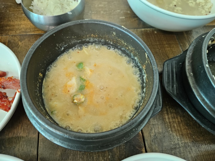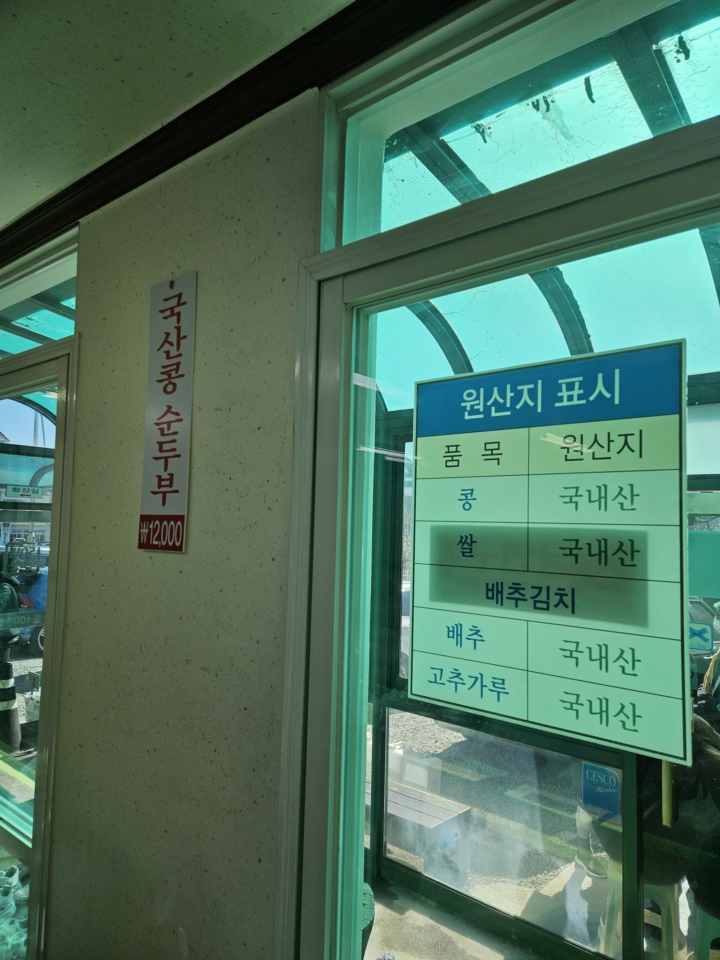 12시 50분쯤 도착해서 대기 3번째였고 10분 정도 기다린 후에 자리로 안내받았다. 메뉴는 "국산콩 순두부" 하나 뿐이라 대기하는 동안 메뉴 고르고 어쩌고 할 필요도 없다.