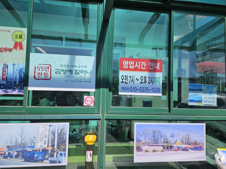 얼마 전 여행하면서 아침으로 먹었던 순두부가 자꾸 생각나서 지난주에 당일치기로 속초에 다녀왔다. 오후 2시까지 영업을 하지만, 재료 소진 시 조기 마감할 수도 있다고 해서 약간 걱정을 하면서 출발했다. 다행히 마감직전에 점심으로 먹고 온 김영애할머니 순두부 본점 재방문 후기이다.
