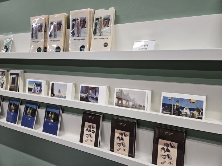 놀이공원 가면 어트랙션 하나 타고 나오는 길에 꼭 기념품샵이 있던데 미술관 아트샵도 그런 맥락이다. 에드워드 호퍼 전시 보고 나니 굿즈 뽐뿌 엄청 온다. 그중 패브릭 포스터가 가장 가지고 싶었는데, 현재 판매 중지상태라 아쉬웠다. 대신 엽서와 마그넷 중 고민하다가 가장 좋아하는 푸른 저녁 자석 하나 사 옴~