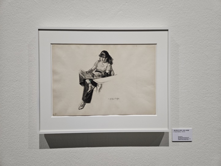<햇빛 속의 여인> 1961의 경우 사진촬영이 가능한 1층 전시실에 있어서 호퍼 전시회 후기에 가장 많이 등장하는 그림인 것 같다. 그림만 담은 사진이 없어서... <독서하는 조 호퍼> (1935~40년경)과 <잠자는 조 호퍼를 그린 습작> (1940~45)만 온전히 담아 올 수 있었다 ㅠㅠ