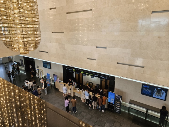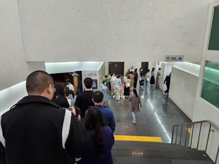 공연 시작하기 전 경기아트센터 대극장 1층은 매우 붐벼서 앉을 자리도 없고, 음료수 마시기도 여의치 않았다. 화장실도 줄 서서 가야 하니... 2층에서 화장실도 다녀오고 의자에 앉아서 기다리다가 시간 맞춰 4번 게이트로 입장했다.