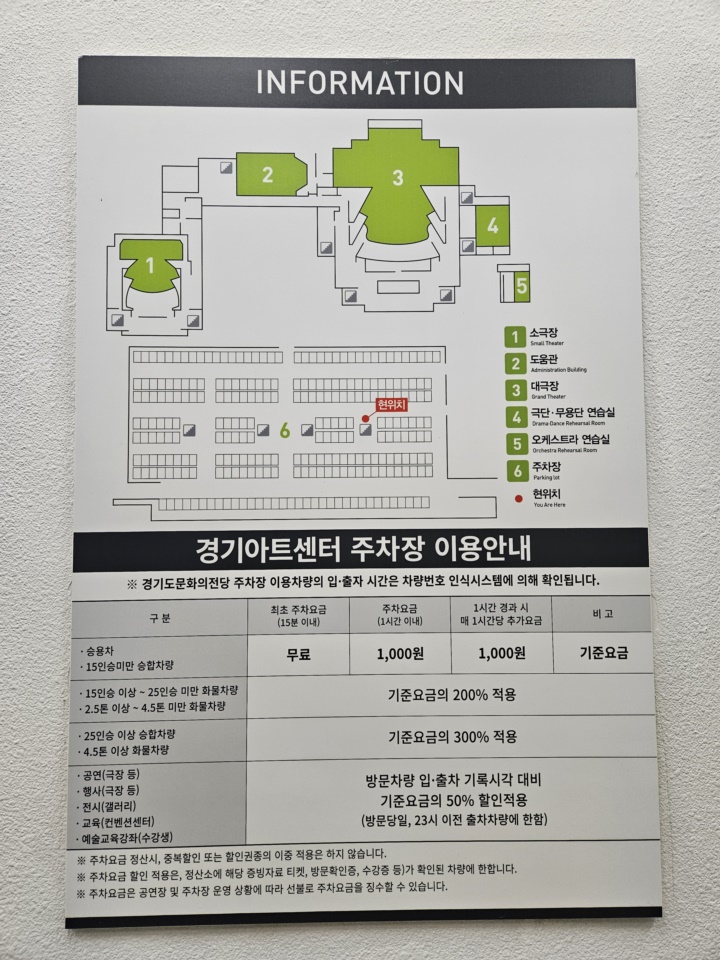 공연, 행사, 전시, 교육, 예술교육강좌 수강생의 경우엔 방문차량 입출차 기록시각 대비 기준요금의 50% 할인이 적용된다. (방문당일, 23시 이전 출차차량에 한함) 출차할 때 직원분이 관람티켓 확인을 하시는데... 요금이 많이 나왔다고 깜놀하심;;; 주차요금으로 3천 원 결제했으니 6시간 동안 있었던 건데... 인계동 주차 어디다 할지 고민될 때 경기아트센터 주차장 여유 있다면 이용해도 괜찮을 것 같다. 뮤지컬 캣츠 오리지널 내한 수원 공연 간단 후기 끝:D