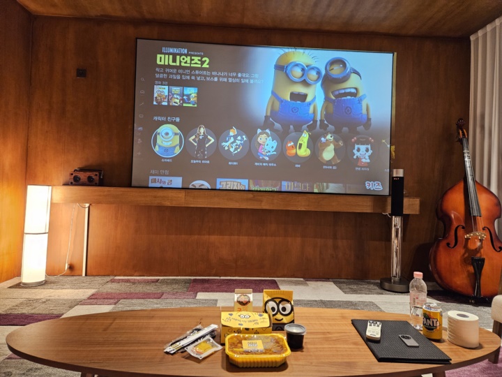 사진으로 보면 보이는데 150인치 광학 스크린 빔프로젝터로 영화 볼 맛 나지만... 전날 닥터차정숙을 못 봐서 그거 먼저 보느라 ^^ㅋㄷ