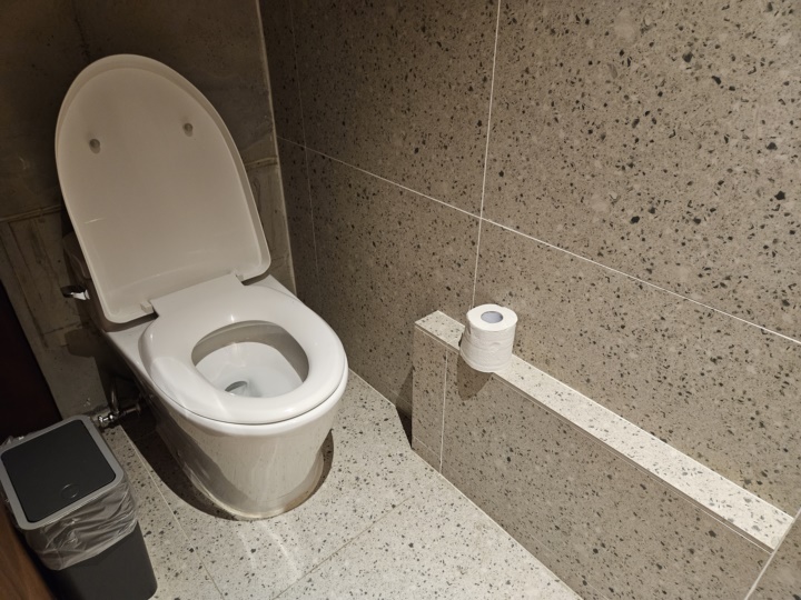 화장실은 세면대와 히노끼룸 중간에 위치하는데 단차가 있어서 발을 헛디딜 수 있다. 희한한 점은 환풍기가 화장실 안쪽이 아니라 문 밖에 위치한다는 점이었다;;; 특이점은 저런 두루마리 화장지가 화장실뿐만 아니라 화장대나 메인룸 탁자 등에 티슈 대신 두루마리 휴지 조금씩 남은 게 놓여있는 점이 뭔가 호텔 분위기와 달리 언발란스한 느낌?