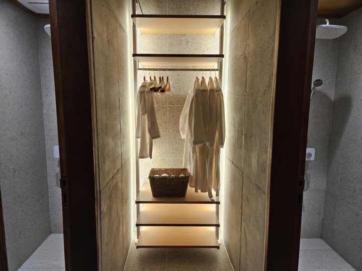 샤워가운과 타월 양쪽으로 샤워실이 2군데 준비되어 있다. 개인적으로는 화장실이 2칸이고 샤워실은 1칸인 것이 더 좋지만 설계하신 분의 이유가 있을 터...