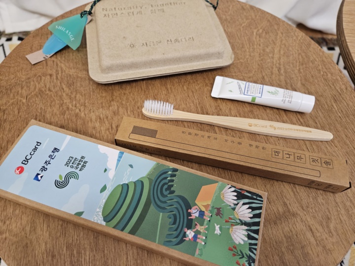 대나무 칫솔과 치약,