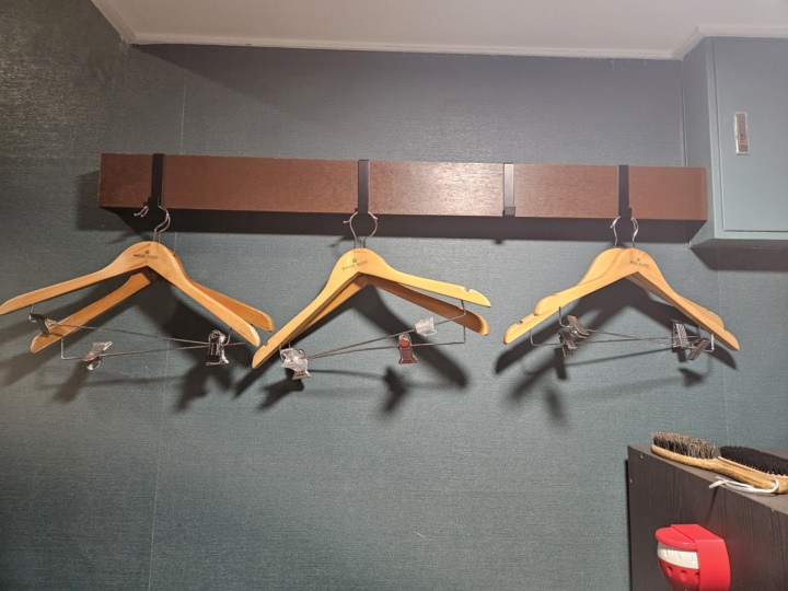 옷장, 벽장 없이 옷걸이를 배치했고